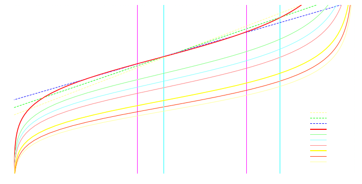 Thermister transfer plots for different lowside loads and linear approximations: