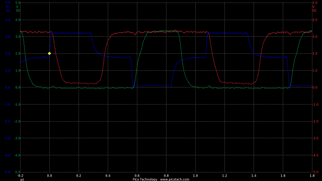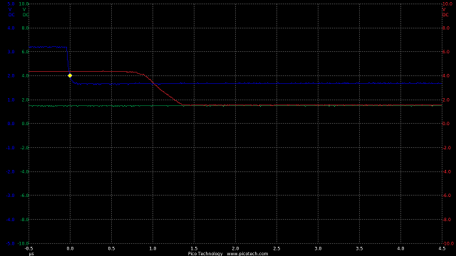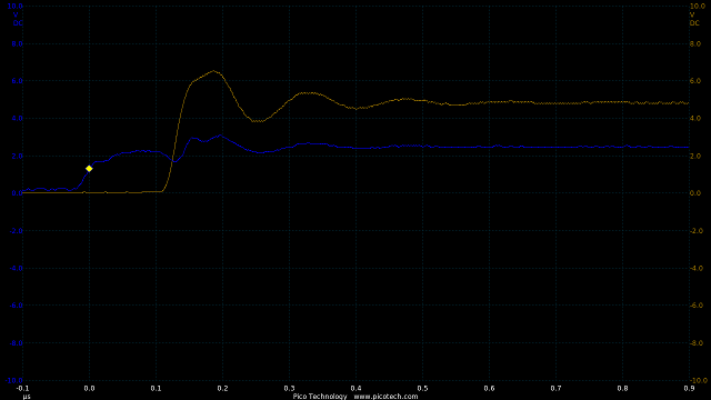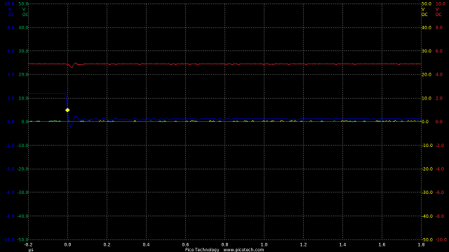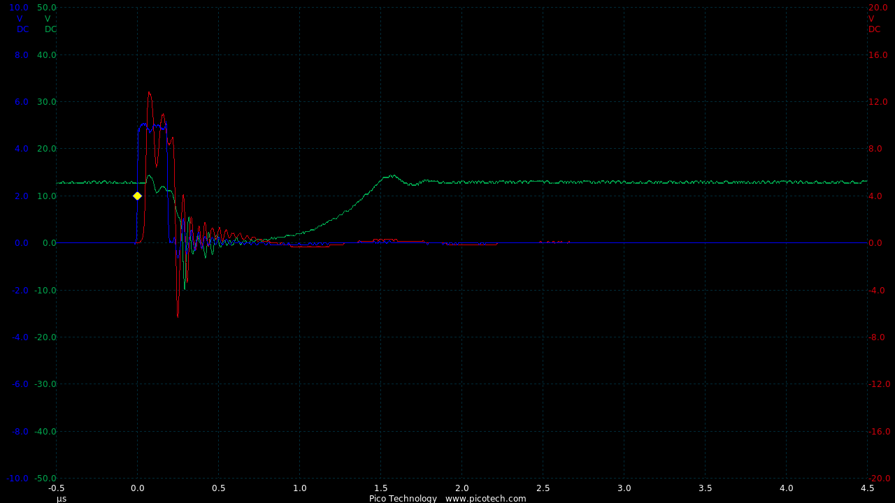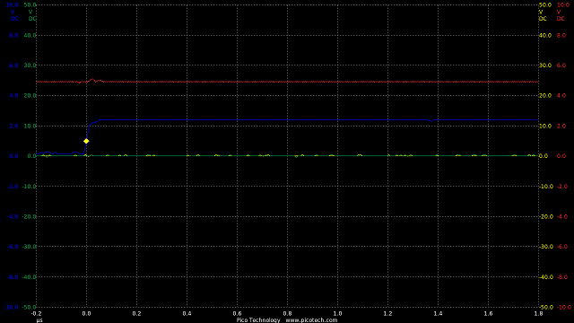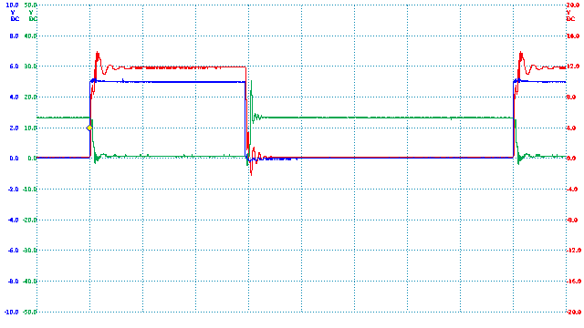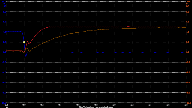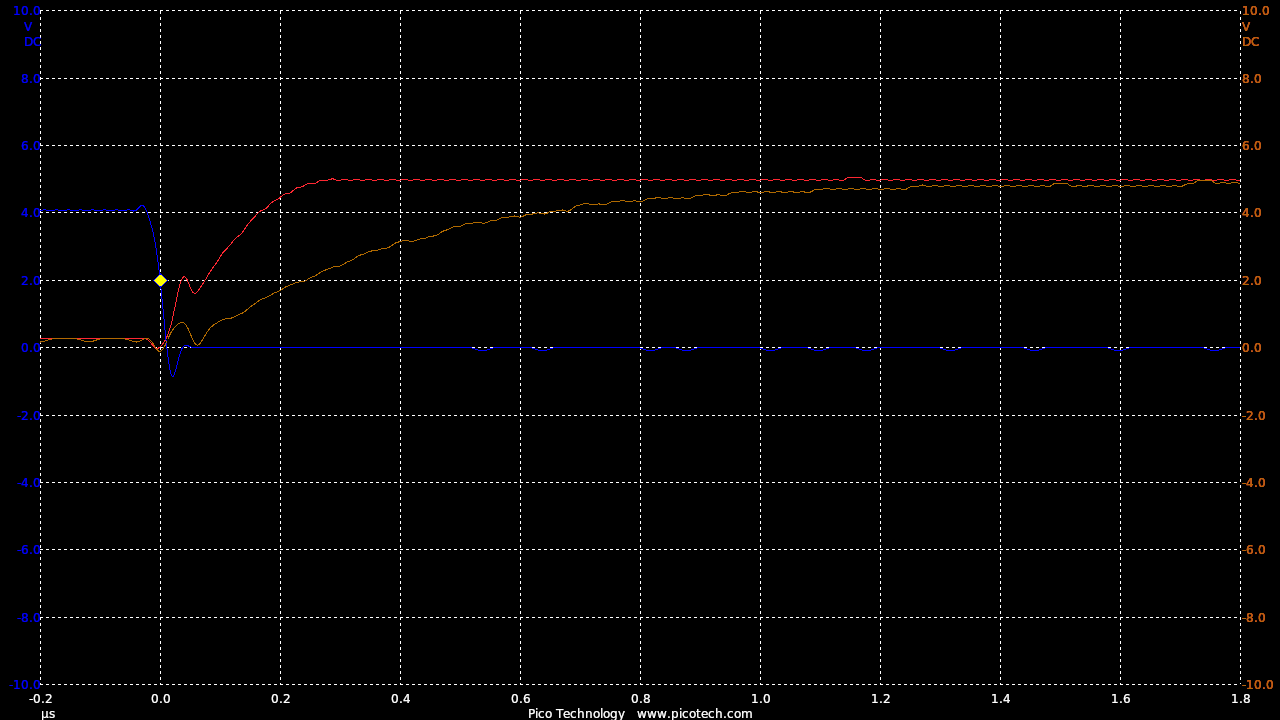 TIME:200nS/div, Blue:TP1(2vDC/div), Red:TP2+R3(2vDC/div), Orange:TP2-R3(2vDC/div).