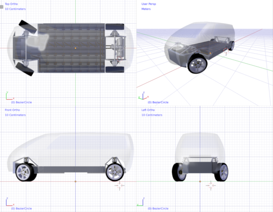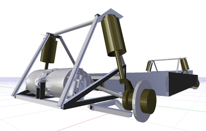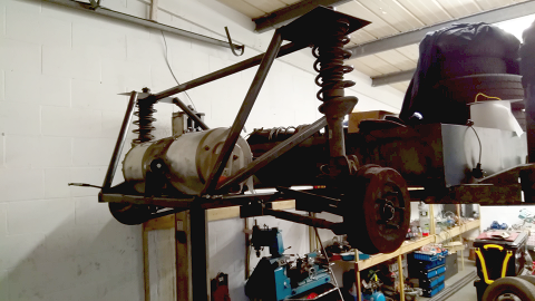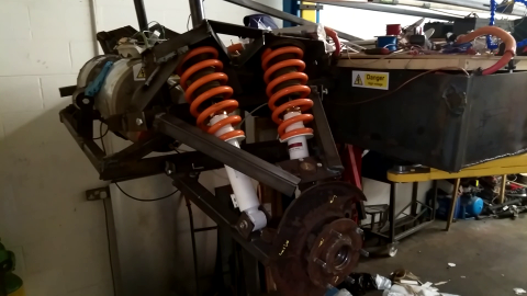 The Transit suspension is just not good for this purpose, so a new design is being pursued using twinned coilovers and double wishbone: