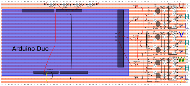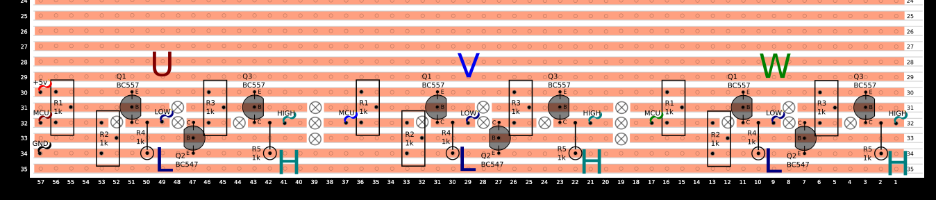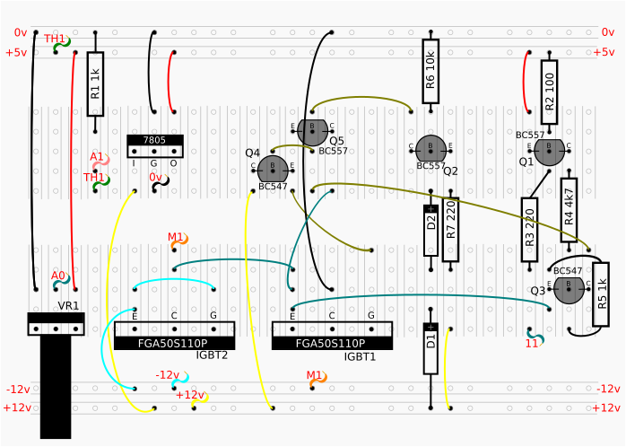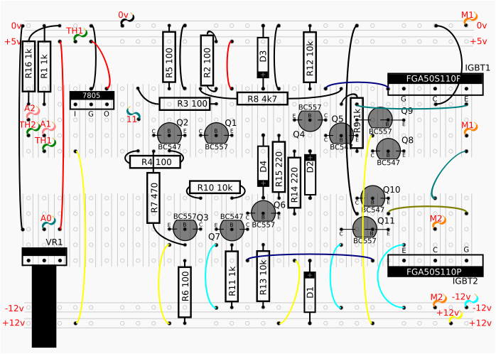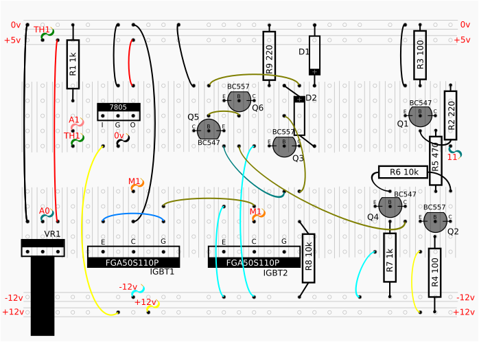 So this is now showing the single output from the Arduino is amplified to the motor and can control the switching of both IGBTs independently.