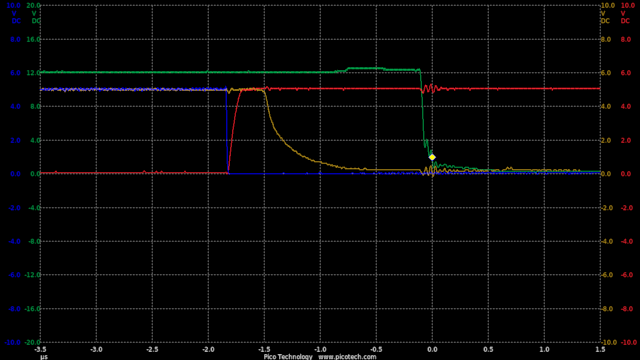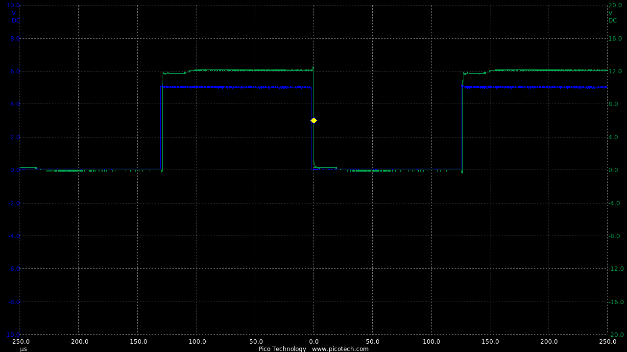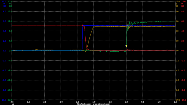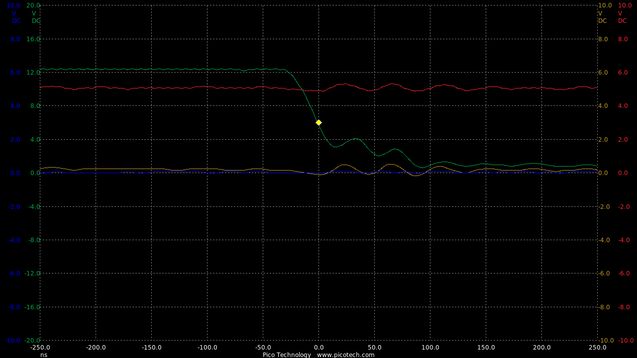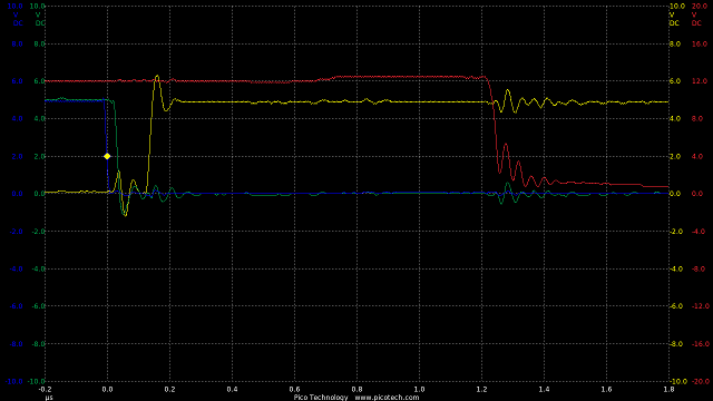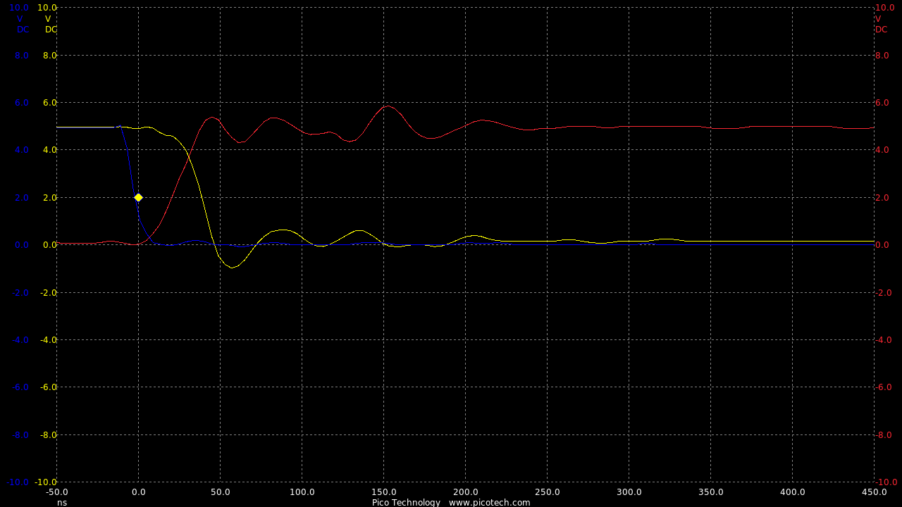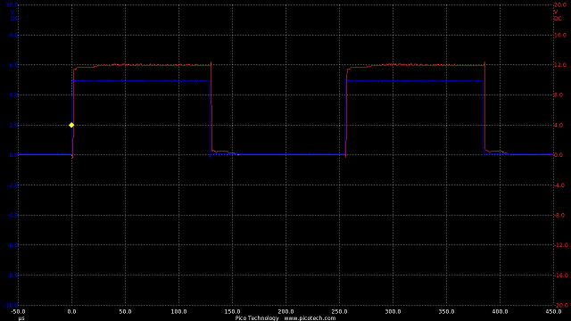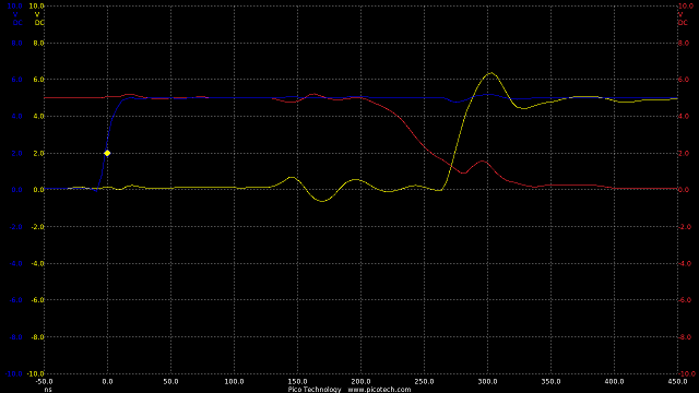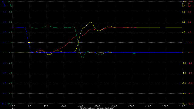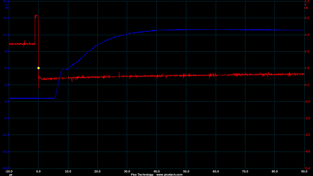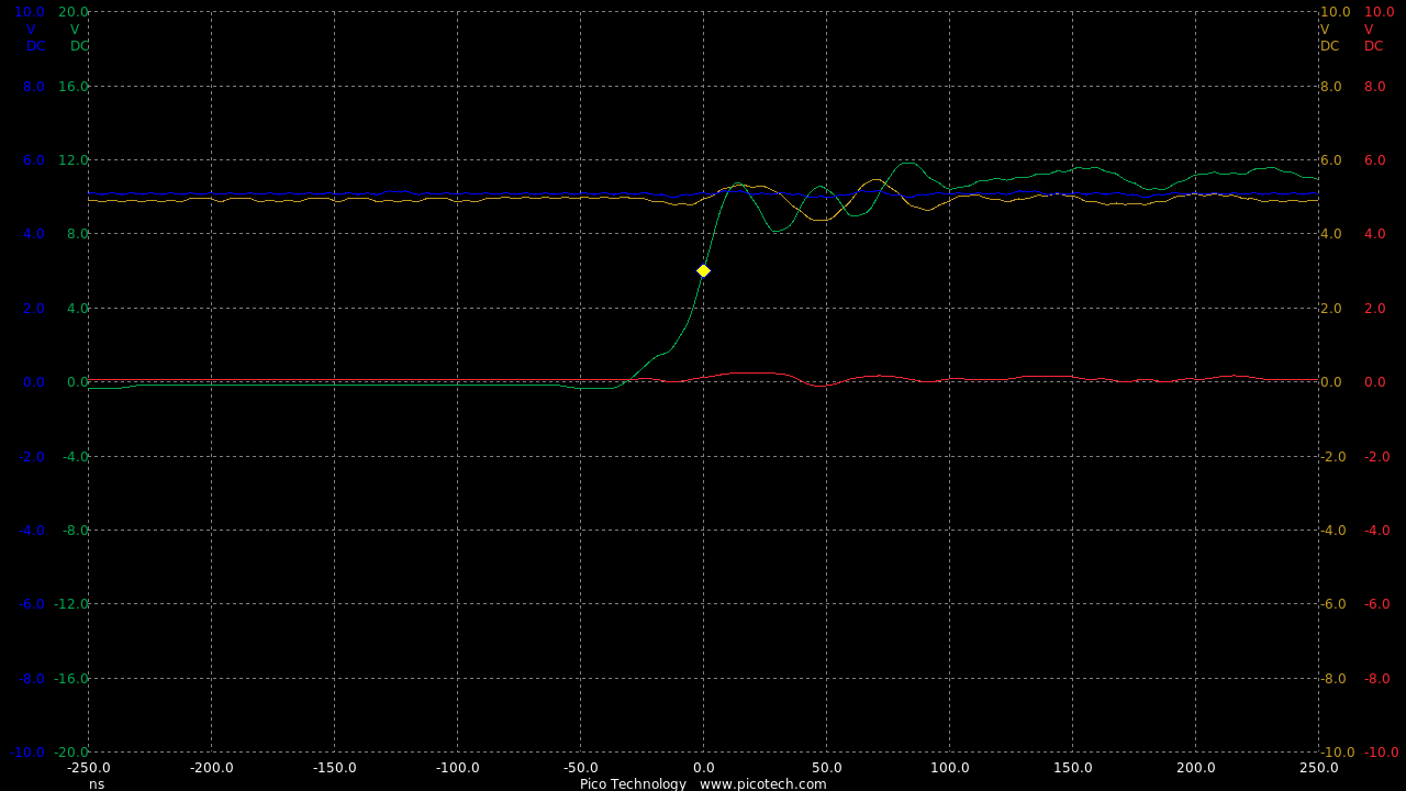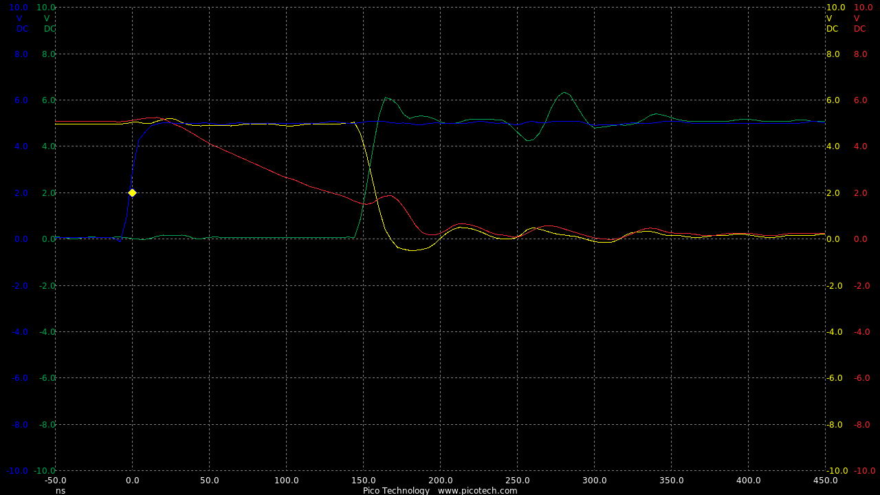 Now we are seeing speeds much closer to the theoretical RC circuit of the 1k charge resistor and gate capacitance.