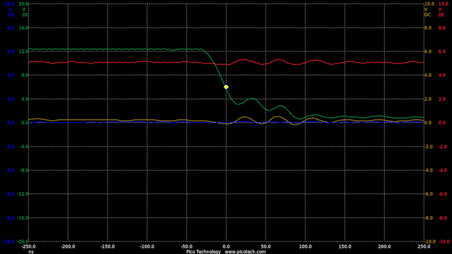 Traces taken from IGBT2 gate, vs MCU1 IO9