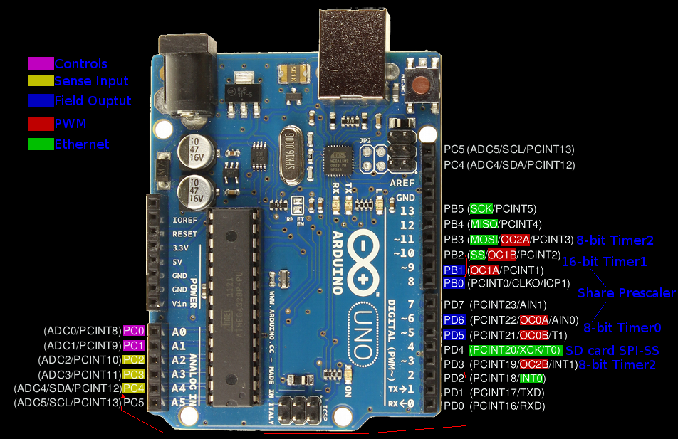 This required some shifting around to allow SPI and W5100 pins to work.