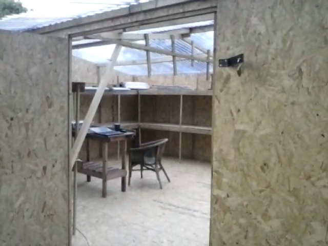 The roof panels are clear corrugated plastic sheets (Corolux).